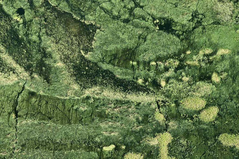 “在距離地面 50 至 500 英尺距離的拍攝中,你所能看到的地面風景在真實清晰與抽象兩者之間徘徊,”塞克勒說道,“而現實與抽象之間的那條界線讓我著迷。”