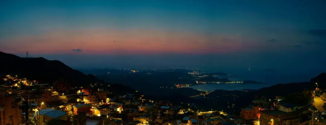 除了沿著巷子體會這獨一份的曲徑通幽之外,俯瞰視角的九份,也非常美,老街燈火盞盞,不遠(yuǎn)處的海面上漁火星星點點。