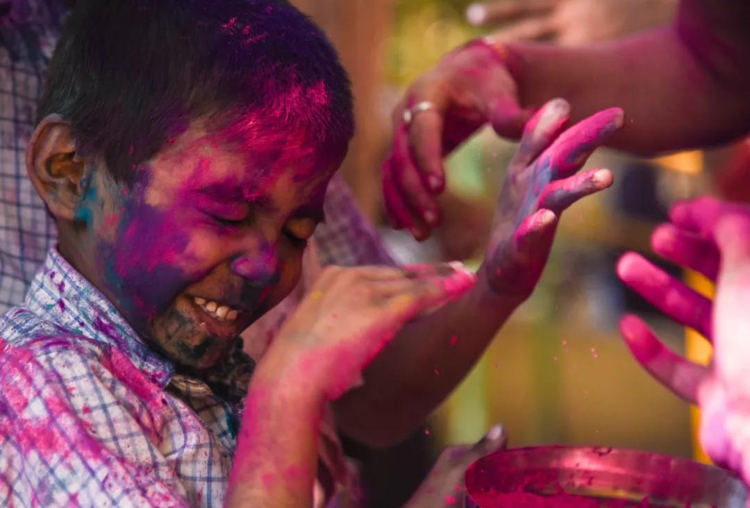 2019 年3月19 日,在印度孟買一所學校,孩子們慶祝即將到來的灑紅節。