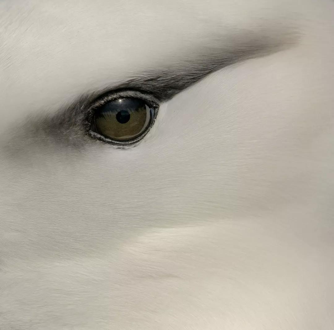 我坐在那里,看著他們的日常生活,突然間注意到了這只成年黑眉信天翁簡單、優雅而美麗的雙眼。在不停尋找了幾個好位置以后,我拍下了這張照片。”