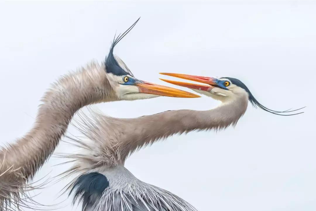 照片背后的故事:“在我抵達我最喜歡的濕地時,一場暴風雨在這群大藍鷺中正蓄勢待發。這個場景一下子抓住了我的注意力:一只雄性大藍鷺,明顯想要引誘雌性大藍鷺,正在雌性面前伸展自己的身體。