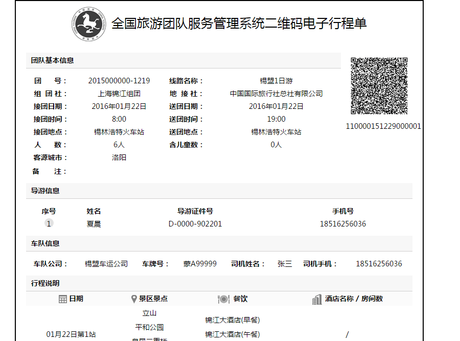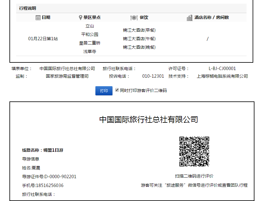 2.旅游團(tuán)隊(duì)電子行程單的生成