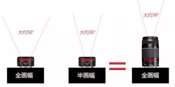 還需要注意一點(diǎn),相同的焦距鏡頭用在全畫幅、半畫幅相機(jī)上也是有一定差距的。比如,50mm的焦距鏡頭用在全畫幅機(jī)子上,它的視角就是50°左右,而用在半畫幅機(jī)子上視角就只有30°左右。