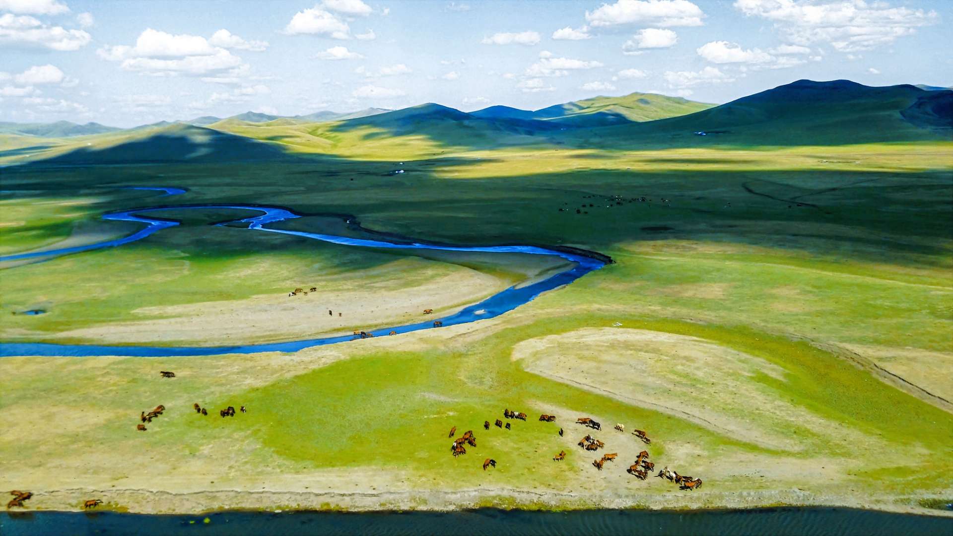 如果不是航拍,你看不到它整體的美;所以會有很多跟團的朋友說:原來就是一個小河溝啊,而我們選擇穿越草原,也是能為了在草原制高點有一個更好的俯瞰視角,不留遺憾。這個是普通團隊所不能實現的;