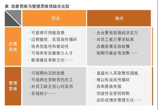 在不同經營環境下,企業領導做出不同傾向性選擇無可厚非,但需要注意的是:要把握好改善思維與管理思維之間的平衡,特別是管理思維不能成為主流。