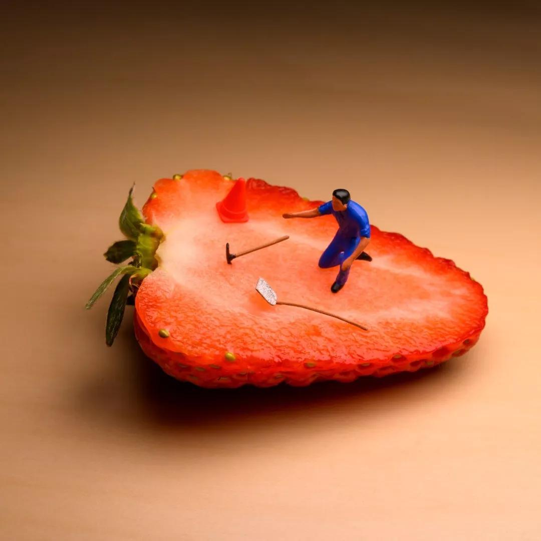比如下面這張水果圖片,攝影師就加入了一些玩具模型,讓畫面更加有趣味,但是又不會干擾到主體。