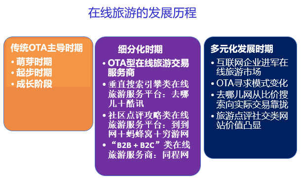這一時期在線旅游市場參與的主體越來越多,且模式亦越來越多元化、差異化、各家均處于持續變革期。