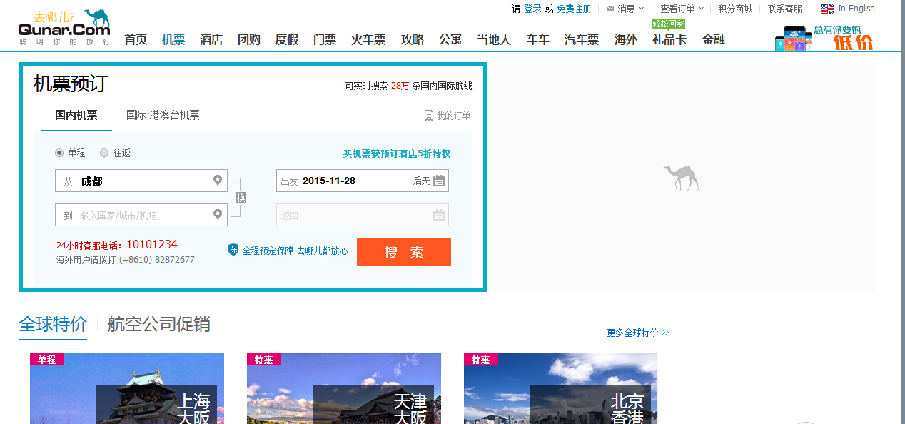 2005年2月去哪兒網創立,對線上和線下的機票、酒店、度假和簽證等資源進行整合,為用戶提供及時、可靠的旅游產品價格查詢、比價和預訂服務。