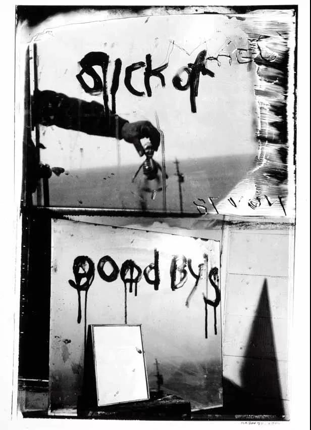 1971 年,隨著人們對(duì)弗蘭克及其作品的更加關(guān)注,榮譽(yù)不斷到來。他與第二任妻子瓊·利夫(June Leaf)決定一道自我流放。他們來到加拿大新斯科舍省馬布島上,遠(yuǎn)離塵囂,弗蘭克又開始拍攝靜態(tài)的照片。但他沒有重復(fù)自己,這一次他使用的是 5×7 畫幅一次成像的寶麗來相機(jī),并且很少用單幅照片,而是用多幅照片拼接成作品,常常還在底片上刻上文字,與他的以前作品完全不同。