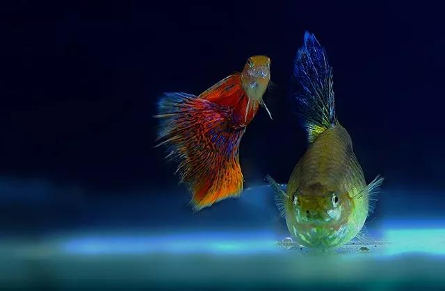 針對魚缸的魚兒,我們主要對魚兒主體進行布光,而不是背景。這樣背景就會完全欠曝接近純黑,而魚兒則可曝光正常,加上閃光相比自然光也會讓細節更加銳利、色彩更加飽和。
