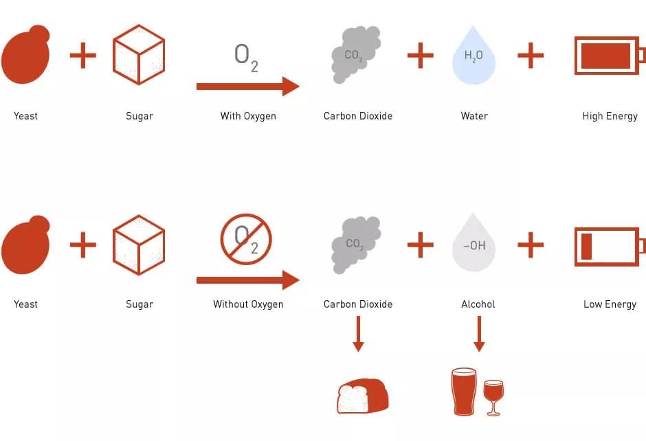 眾所周知,在葡萄酒的釀造過程中,酵母進行無氧呼吸分解了葡萄汁中的糖分,將其轉化成酒精,同時還產生了二氧化碳和少量能量。