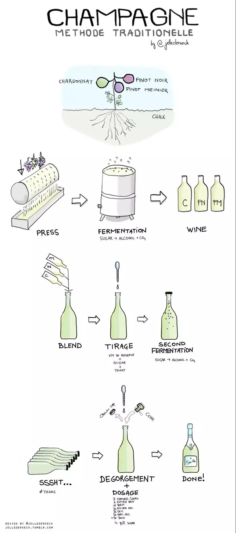 以香檳為例,在二次發酵的補液*過程中,酵母被重新補入基酒內,繼續履行嘎嘎嚼糖,咣咣產酒精的義務,當然,不拿自己當外人的它們還開始喯兒喯兒的放“屁”(產生二氧化碳)。