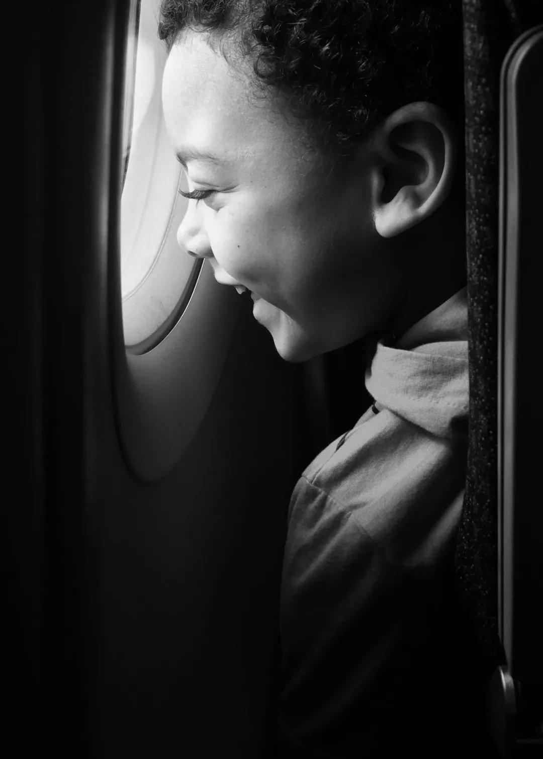 沒必要一直追求著不受阻礙的拍外面的風景,其實你也可以利用飛機的窗戶做前景,制造出框架構圖。