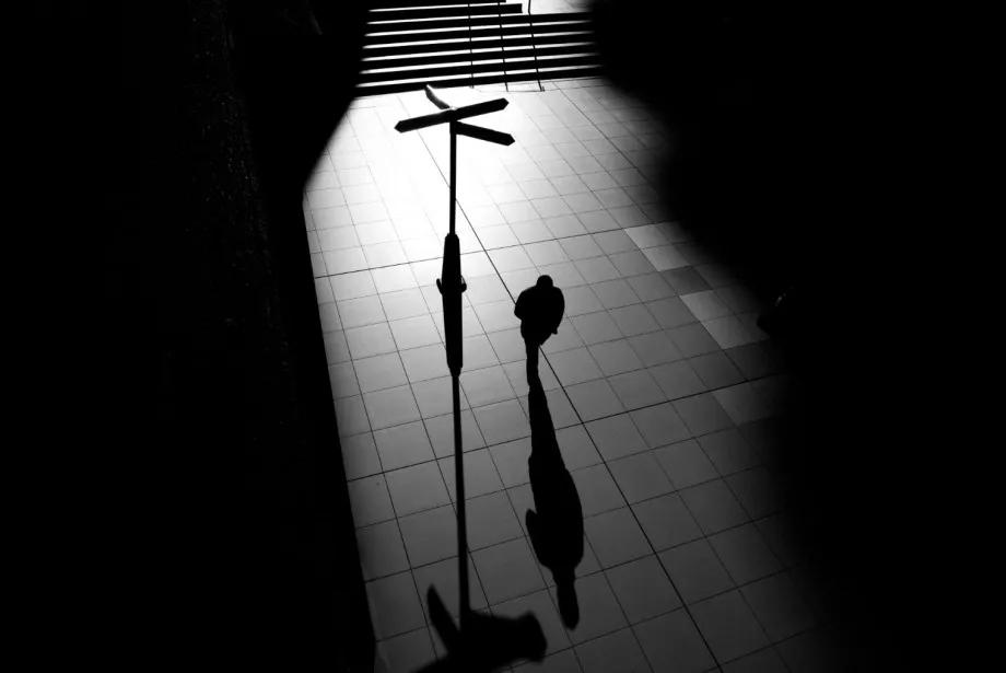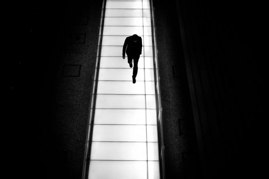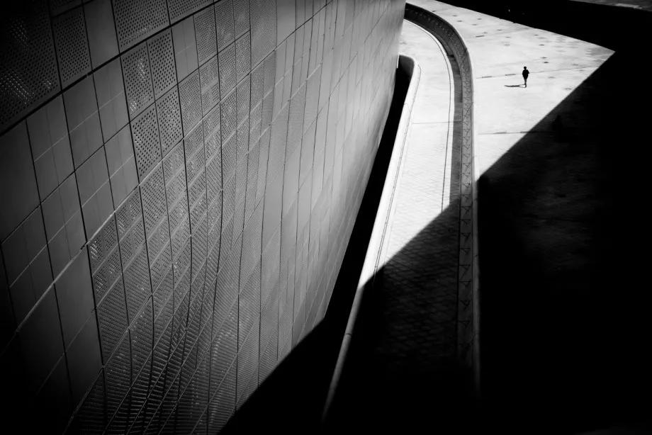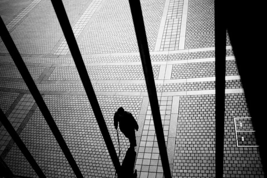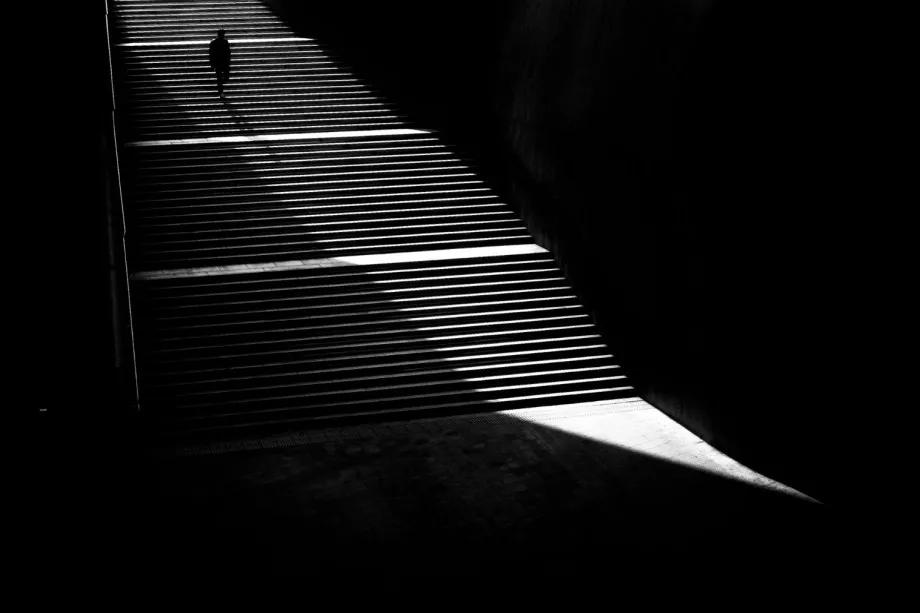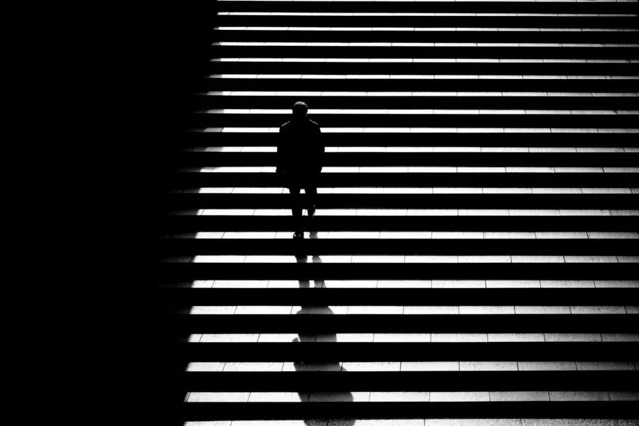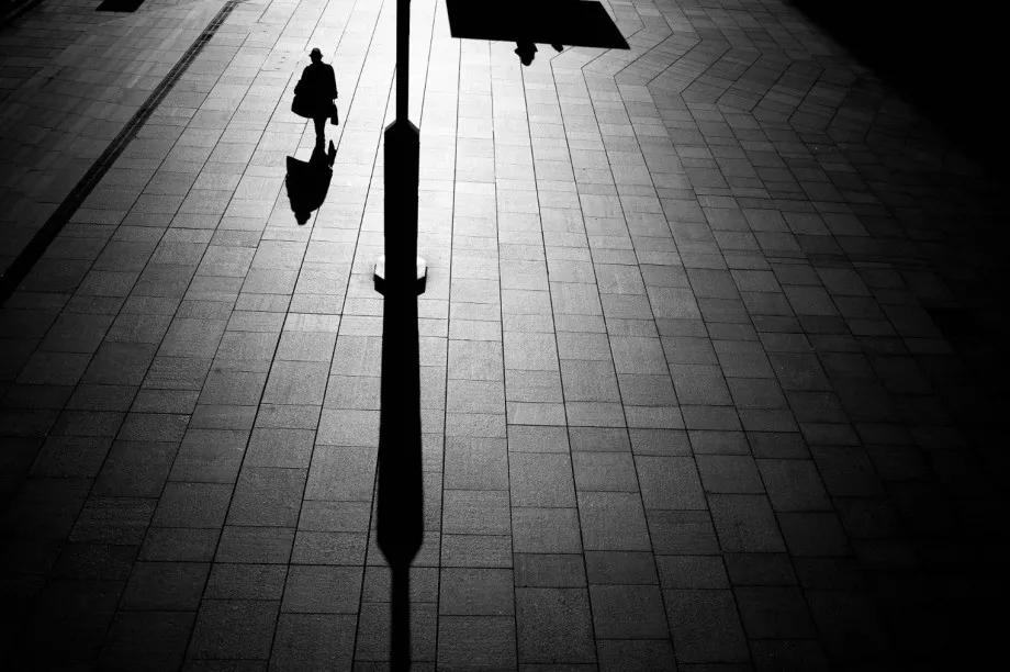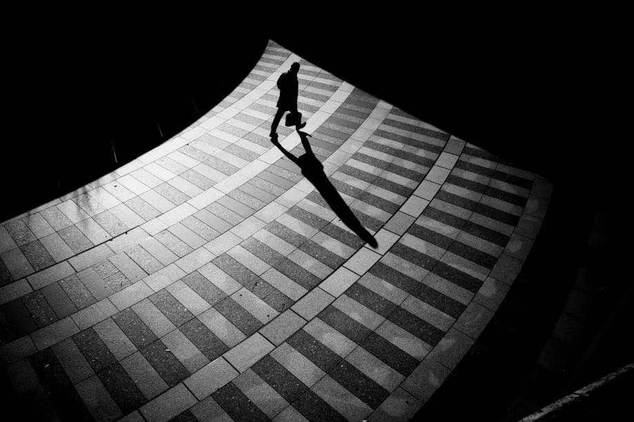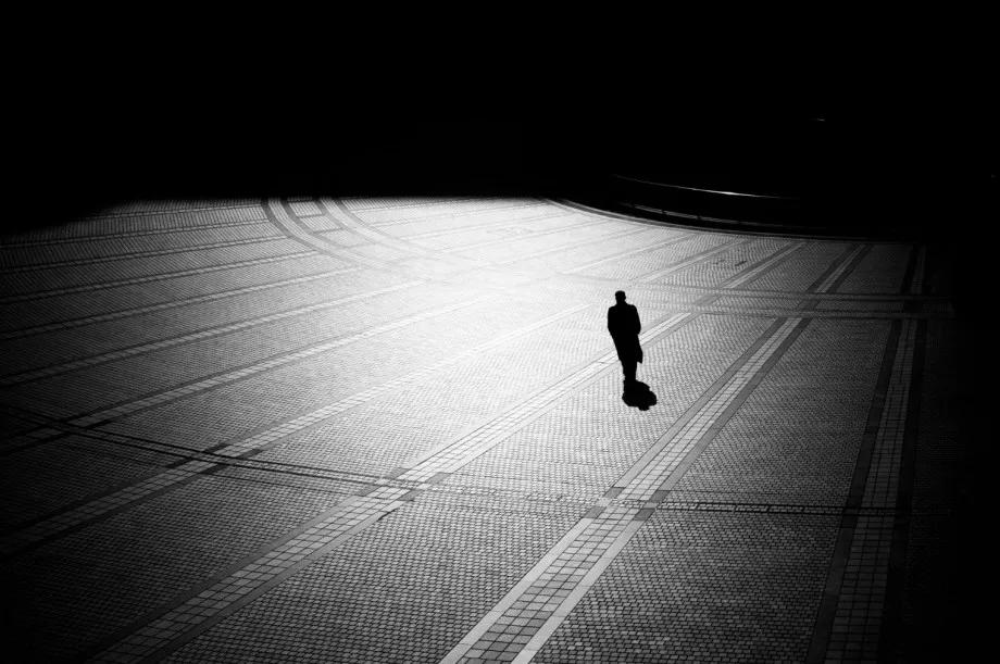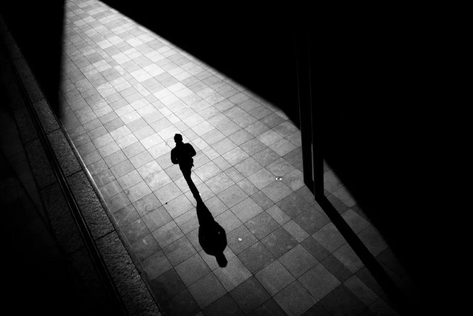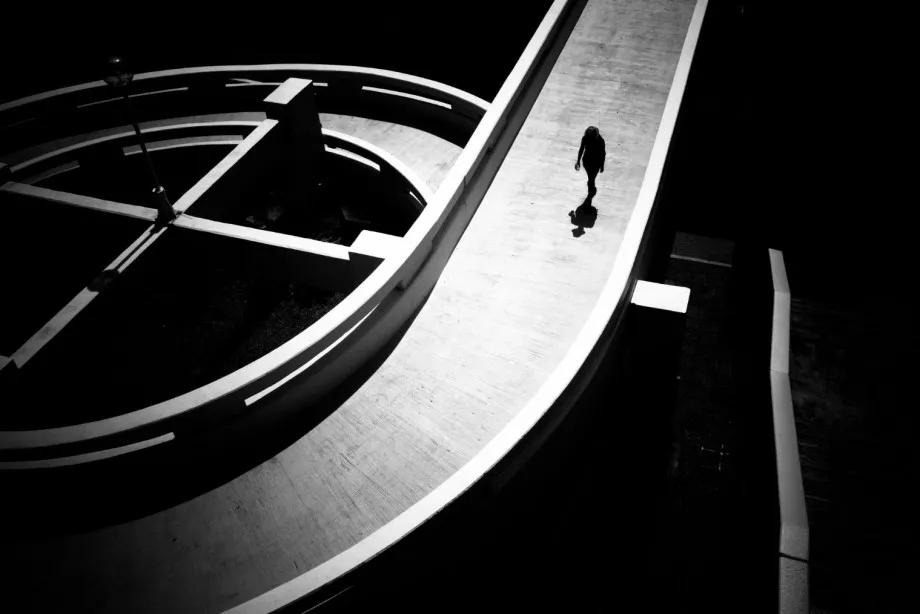 攝影圖片:攝影師Junichi Hakoyama十分擅長拍攝高對比度黑白街頭作品,善于利用場景中建筑物的線條,結合光影而形成明暗對比,加上充滿故事性的單個人物融入其中,便成就影像擁有黑白默片的快感。