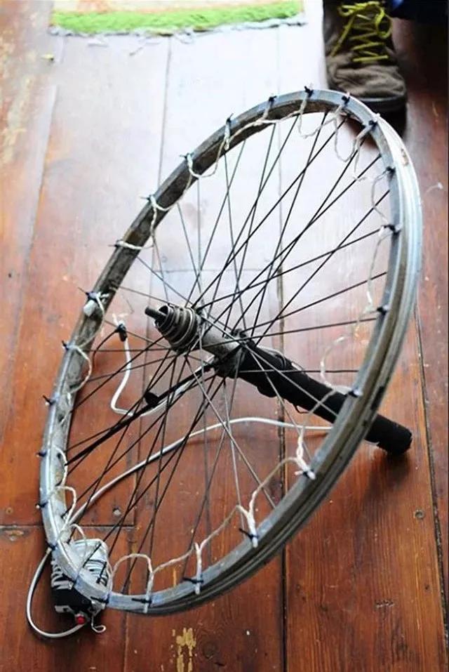 如果不想多花一筆錢購買專門的光繪復(fù)合光源,你也可以自己 DIY,比如說下圖,國外網(wǎng)友把 LED 小燈泡綁在自行車輪上制作的光繪器材“拿破侖”,拍出來的效果也是很有意思的呢!