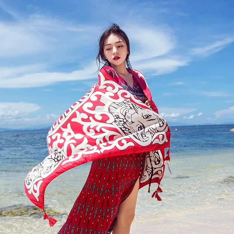 特別是在海邊旅行,因?yàn)楹oL(fēng)很大很容易將頭發(fā)吹亂,整個(gè)人的形象也會(huì)大打折扣。如果將絲巾圍在頭發(fā),就可以將凌亂的頭發(fā)蓋起來(lái),注意,這里可以稍微將絲巾往后拉一點(diǎn),露出一絲頭發(fā)會(huì)看起來(lái)更加的風(fēng)情萬(wàn)種。