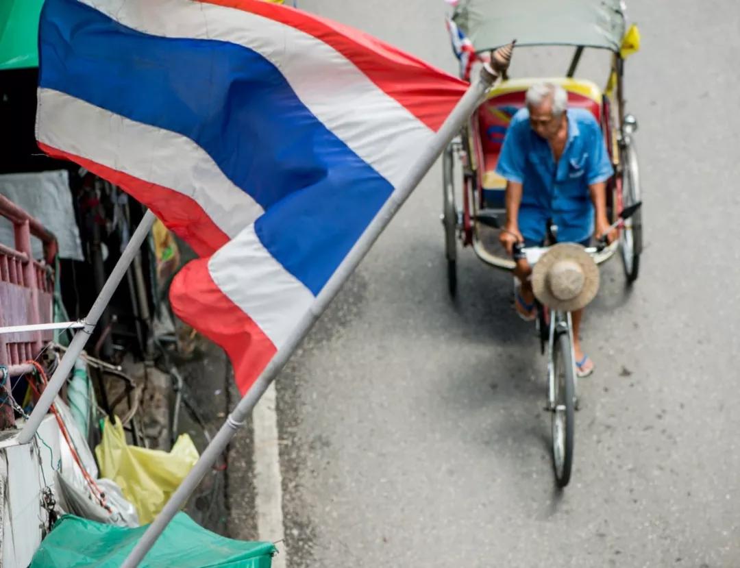 比如說下面這張攝影作品,就在前景處安排了一面旗幟,正好遮擋住了左邊雜亂的街邊場景。