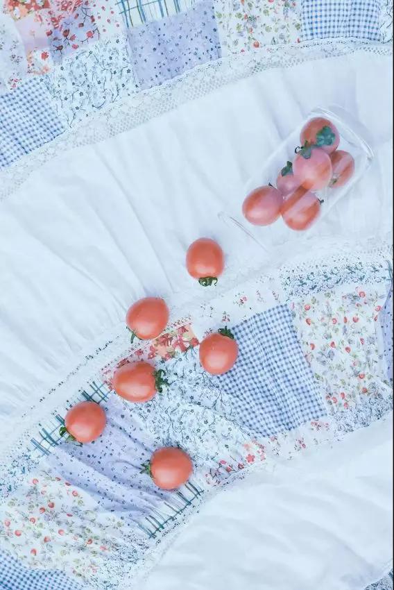 再搭配一些色彩鮮艷而應景的物件,如紅色的圣女果,拍出來就更好看了,而且拍攝完了還可以吃。