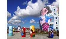 參觀載于世界吉尼斯紀錄的“最大的套娃和規模最大的異形建筑群”稱號的——【套娃廣場(外觀)】,廣場上有大小套娃200多個,是世界上最大的異型建筑群,最高的套娃高達30多米,拍照留念,【國門(遠觀)】,莊嚴肅穆,在國門乳白色的門體上方嵌著“中華人民共和國”七個鮮紅大字,上面懸掛的國徽閃著的金光,國際鐵路在下面