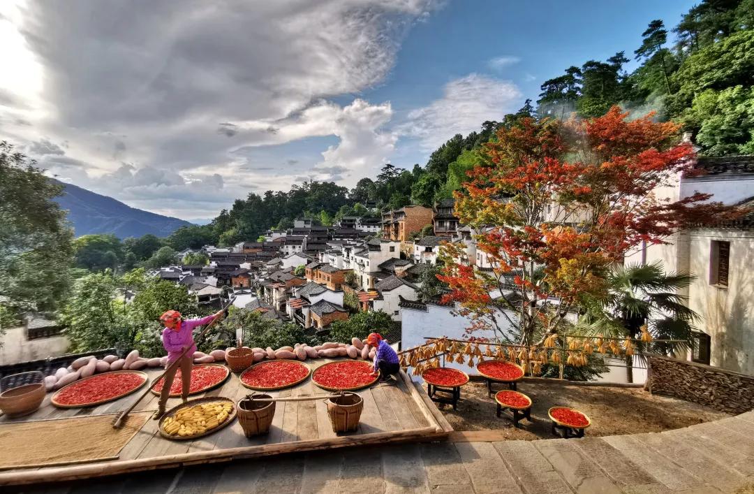 早起游畢乘車(約1.5小時)前往中國最美麗的鄉村婺源, 游覽山崖上的古民居村、屋頂上的曬秋美景AAAA級景區--【梯田花海?篁嶺】(游覽約2.5小時)乘觀光索道上山(纜車費自理,乘纜車贈送篁嶺門票):篁嶺鮮花小鎮:“鮮花”是點綴,象征愜意優雅的生活方式,“小鎮”是主體,是580年歷史積淀的篁嶺文化古村,鮮花與古村相伴,鮮花與古建斗趣,二者結合是鄉村田園生活的寫照,是生態與人文的融合,是夢里老家鄉愁的延續;