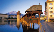 黃昏時在此漫步,仍可領略盧塞恩的一股浪漫的中古情懷,現今卡佩爾廊橋仍是盧塞恩明信片上不可缺少的景物,及獨具特色的【八角水塔】(瀏覽時間不少于10分鐘),這都是琉森的地標性建筑,也是瑞士上鏡次數很多的文化遺跡,之后乘車前往酒店休息。