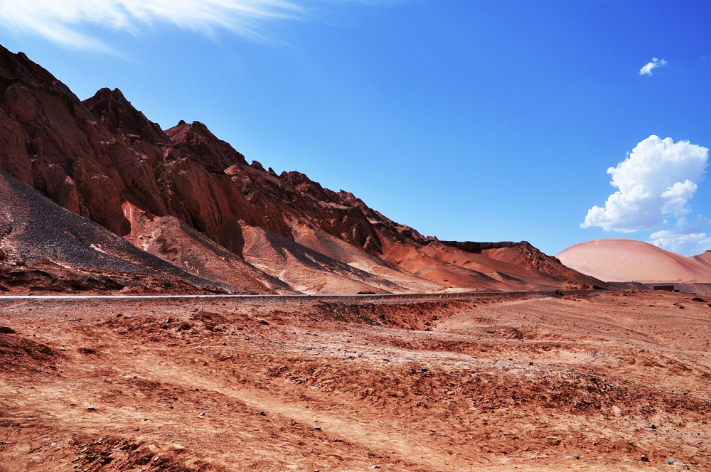 (單程200公里,車程約3小時)早乘車前往西游記中聞名遐邇的【火焰山】(游覽約40分鐘)它是全國最熱的地方,夏季最高氣溫達47.8度,地表最高溫度在70度以上;