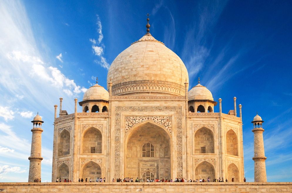 早餐后,乘坐汽車前往,阿格拉,沿途游覽千年水井,之后前往阿格拉,到達后游覽世界七大奇跡之一、世界文化遺產【泰姬陵】(1.5小時)。泰姬陵全稱為“泰姬·瑪哈爾陵”,是印度穆斯林藝術最完美的瑰寶,結合了印度建筑和波斯建筑的風格,是世界遺產中的經典杰作之一。它是莫臥兒王朝第5代皇帝沙賈汗為了紀念已故皇后姬蔓·芭奴而興建的陵墓,每天動用2萬役工歷時22年,竣工于1654年。泰姬陵被廣泛認為是印度穆斯林藝術的珍寶和世界遺產中被廣泛贊美的杰作之一,代表了莫臥兒建筑成就的最高峰;