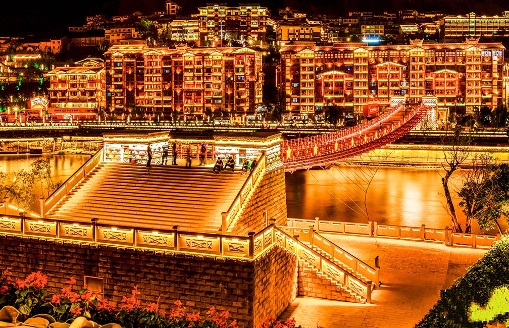 夜幕降臨后,赤水河畔的【茅臺(tái)鎮(zhèn)】,風(fēng)姿韻味無法言語形容,一步一景,步步驚心,美不能再美,赤水河岸邊,房屋上,樹木上,吊橋上,茅臺(tái)渡口,到處飄逸燈光彩帶,一層一層向山上蔓延;
