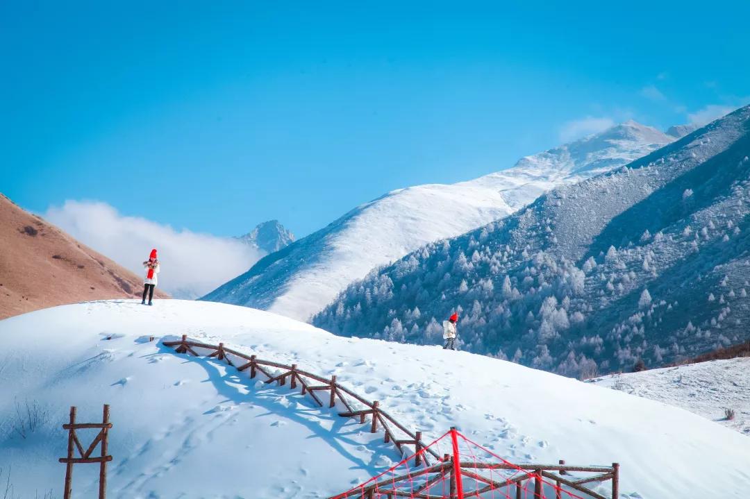 有“四姑娘山后花園”美譽(yù)的畢棚溝(不含景區(qū)觀光車(chē)60元/人-上行游客中心-龍王海/下行娜姆湖酒店-游客中心),溝內(nèi)有原始森林、絢麗多彩的植被、雪山溫泉,景觀豐富。冬季在這里我們可以看到覆滿白雪的四姑娘山,遠(yuǎn)眺藍(lán)天高山染白,奇特的萬(wàn)年冰川,斑駁著枯黃與灰綠的山林;沿兩旁塞滿了楓樹(shù)、槭樹(shù)、鵝掌松、落葉松的小路踱步,冬天雖然已沒(méi)有了紅葉,但枯黃的枝丫卻平添了一番肅殺,也別有風(fēng)味。錯(cuò)過(guò)了畢棚溝金秋的層林盡染沒(méi)關(guān)系,冬季畢棚溝的群山迭起霧氣繚繞會(huì)告訴你,冬天也值得。