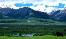 邦達(dá)的藏語(yǔ)為“雄鷹飛不出的草地”,【邦達(dá)草原】是絕對(duì)意義上的西藏界里的大草原,這一塊地勢(shì)寬緩、水草豐美的高寒草原位于三江流域之高山深谷中,曾是著名的“茶馬古道”必經(jīng)之地。怒江支流玉曲上游蜿蜒流淌其中,兩岸廣闊的低濕灘地上生長(zhǎng)著茂密低矮的大蒿草、苔草之類(lèi)的草甸植物,綠茵如氈,成群牛羊在草原上游蕩低頭覓食,偶爾還會(huì)有一些藏原羚出沒(méi)其間。