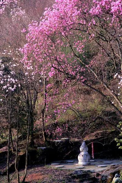 2.在漢中的油菜花競相開放的時候,北川藥王谷的野生辛夷花也是風華正茂的時候。漫山遍野的粉色花朵爭奇斗艷,蔚為壯觀。