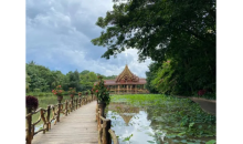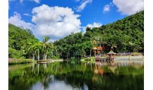 乘車前往【熱帶花卉園】(電瓶車 40 元/人已含)(景區內的商業板塊與旅行社無關)主要體現了熱帶植物花卉、熱帶橡膠和熱帶水果及周總理紀念碑群文物區四大主題。目前開放的景點有葉子花園、稀樹草坪區、周總理紀念碑、熱帶棕櫚區、空中花園、觀魚、熱帶水果種質園、五樹六花園、科技陳列館、巴西橡膠種質資源庫等景點。在園中,可以看到葉如簸箕大的王蓮,形如鞭炮的炮仗花,似鳥兒飛翔的天堂鳥,葉似花花是葉的三角梅,像蛋黃色的雞蛋花,有會跳舞的跳舞草,會含羞的樹和含羞的草,會下雨的雨樹,使口感變味的神秘果等熱帶奇花奇樹;可以參觀科技陳列館了解橡膠樹種植歷史和發展前景及它與人民的日常生活有何種關聯?可以通過現場割膠演示,來親身體驗如牛奶般的膠乳是如何流淌出來的;可以通過視察碑、會晤碑等紀念碑群了解敬愛的周總理對熱作所科研人員的關懷及與緬甸吳努總理友好會晤的情形;還可以認識豐富的熱帶特有水果,享受那天然甜美的滋味。