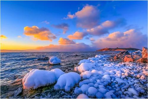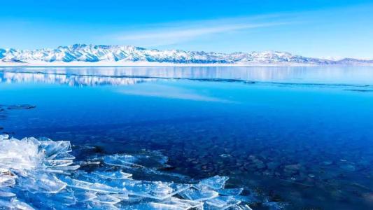 沿湖行走,岸邊的石頭像是羊脂玉一般,有的圓潤,有的光滑,大小不一,隨處可見的冰筍、冰柱形態各異、錯落有致、晶瑩剔透,賽里木湖冬季冰層厚度可達將近一米,只要不走到冰面邊緣安全都是沒有問題的,賽里木湖湖水純凈湛藍,清澈的可以看到十多米水下的石頭,走在冰面上,就像走在透明的玻璃板上一樣,是一種難得的奇妙體驗;