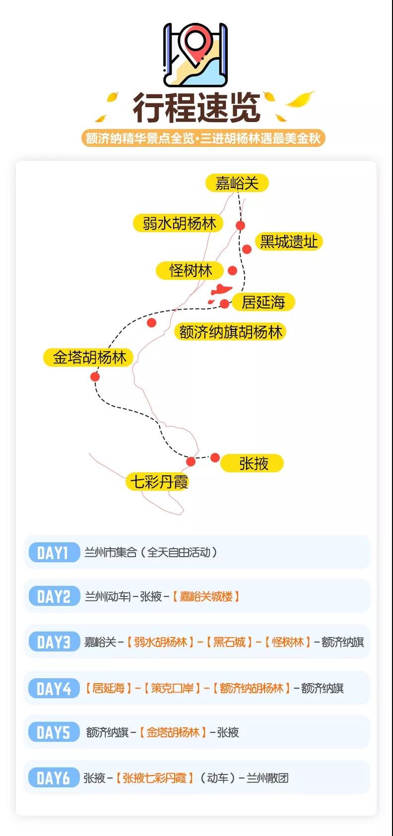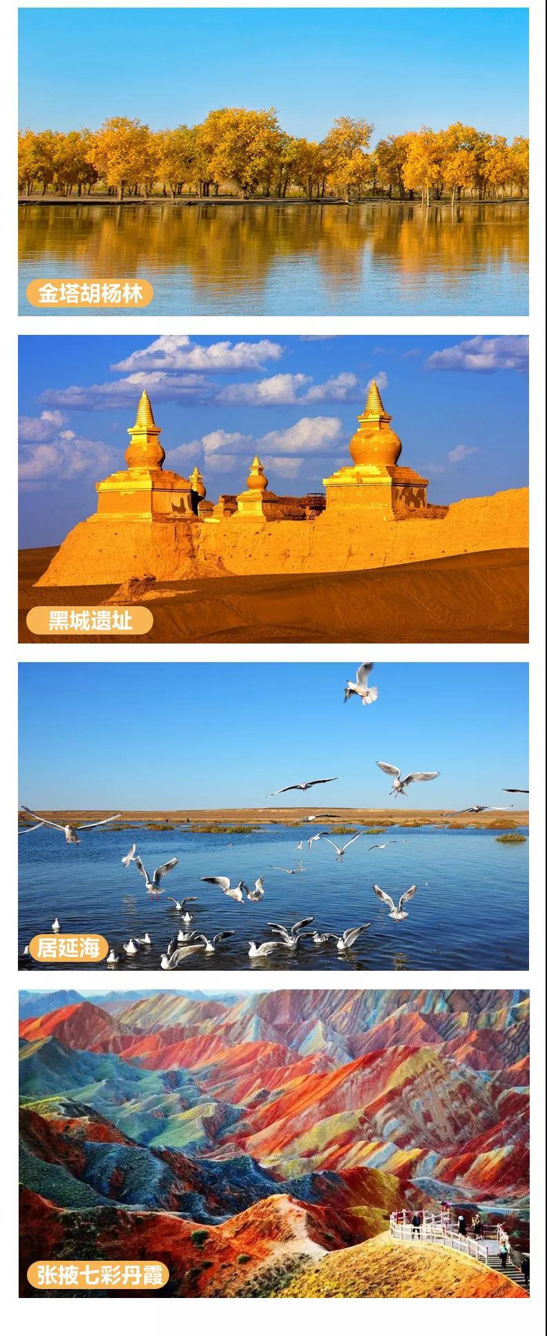 門票:含額濟納胡楊林、黑城-怪樹林-弱水胡楊林門票(含景區交通車)、居延海(含景區交通車)、張掖七彩丹霞地貌(含景區交通車)、嘉峪關城樓門票、策克口岸門票。