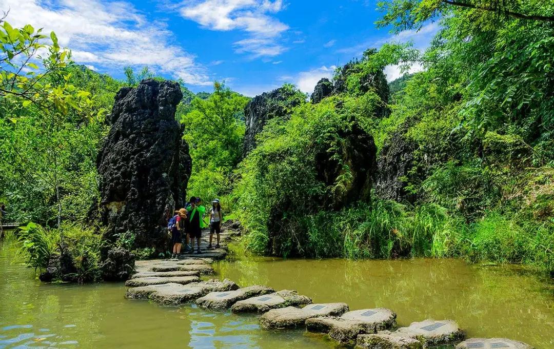 上午:早餐后乘車前往荔波。抵達后用中餐,后游覽世界自然遺產地,中國最美麗的地方之一【小七孔景區】(不含小七孔電瓶車40元/人,保險10元/人,必須消費敬請自理)在寬僅1公里、長12公里的狹長幽谷里,集洞、林、湖、瀑、石、水多種景觀于一體,玲瓏秀麗,有“超級盆景”的美譽。游覽景區名字由來地【小七孔古橋】。欣賞景區靈動多姿的各色瀑布:起迭著【68級跌水瀑布】,順贄而下,奔瀉而去;【拉雅瀑布】布精巧醉人,水珠飛濺;【臥龍潭瀑布】銀絲瀉地,潭水色彩斑斑斕絢麗;【翠谷瀑布】在群峰緊鎖中蒼翠欲滴。感受赤足濕身樂趣的【水上森林】,清澈的水流沖刷著青石,行走于其中,宛若身臨瓊瑤仙池;【鴛鴦湖泛舟】(不含鴛鴦湖游船30元/人,非必須消費項目,自愿消費)—尋找一份愛情;嫵媚而迷人的【響水河】更是貫穿了整個風景區。
