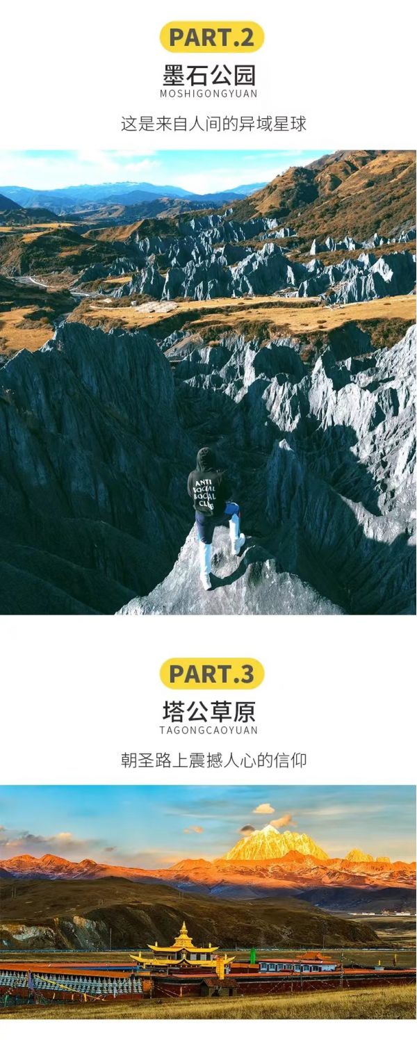 1、魚子西和格底拉姆均可以欣賞雪山日落,景點根據實際情況二選一;
