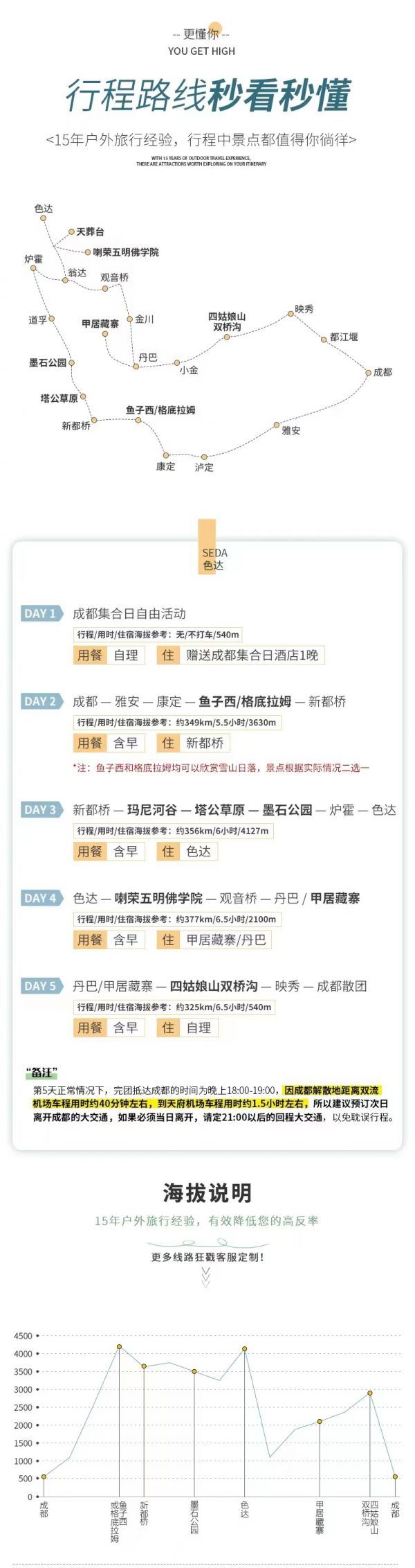 請對應使用我方色達2-6人VIP自由小團5日行程,因使用其它行程造成的投訴,責任自負;請仔細閱讀以上行程文檔,同意并保證遵守我方安排,以免為您帶來不必要的麻煩;如產生合同糾紛或人身意外事故,按《中華人民共和國合同法》、《道路交通法》、《保險賠償條例》裁定;本行程作為旅游合同附頁與旅游合同同等法律效力。