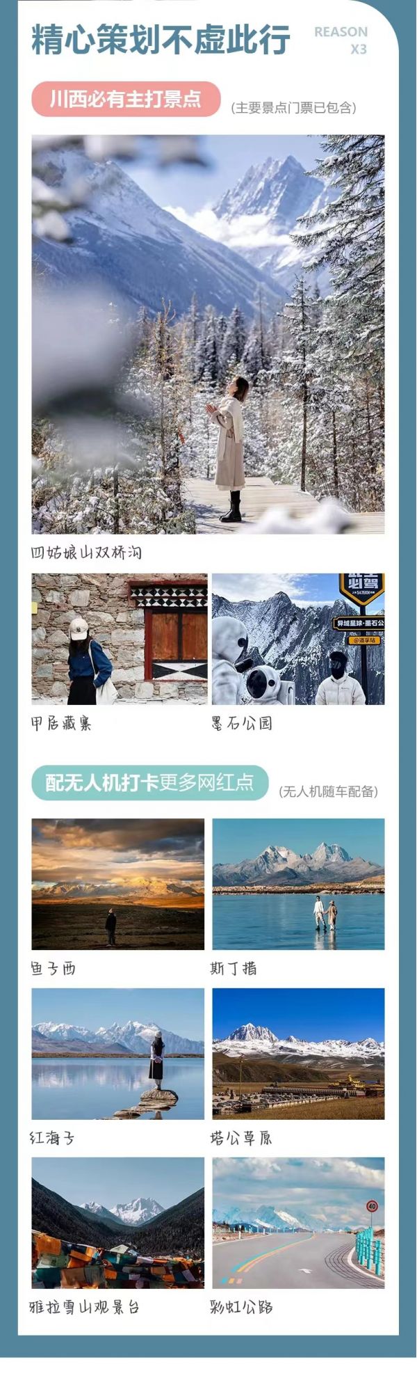 私人訂制:我們業務范圍囊括了全國各大城市,川西、西北、新疆、西藏,在路上永遠有我們的身影。我們將為每一個有定制需求的你策劃出獨屬于自己的完美旅行。