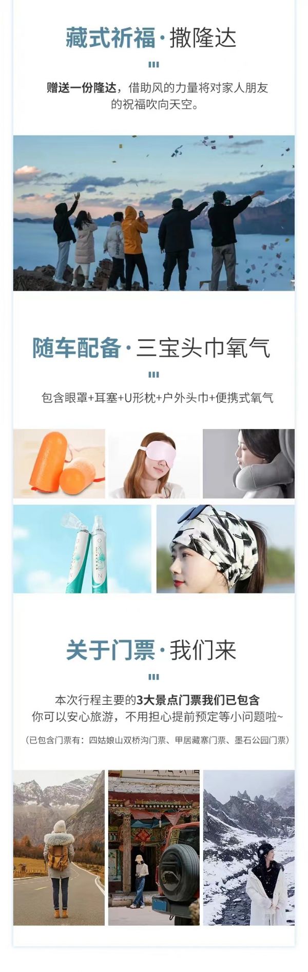 (4)沿途景區景點、餐廳、廁所、加水點、高原緩沖區內設有小賣部、超市、旅游紀念品、手工藝土特產等販賣攤點,非我方安排,請游客根據自身需求及興趣選擇消費,并保留好購物小票以便后續維權;購物時請保管好隨身攜帶的物品,不到人多、擁擠的地方購物,不當眾清點錢包里的鈔票,也不隨商品推銷人員到偏僻地方購物或取物。