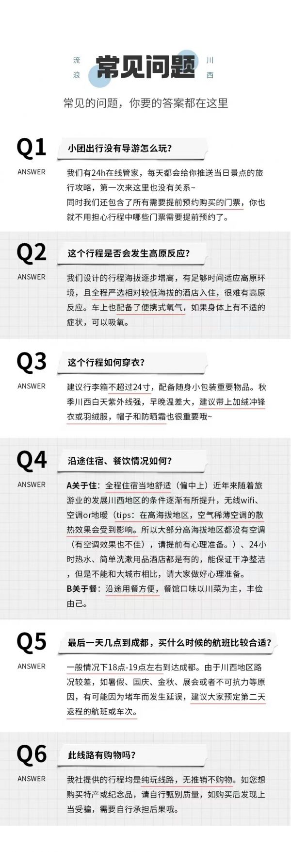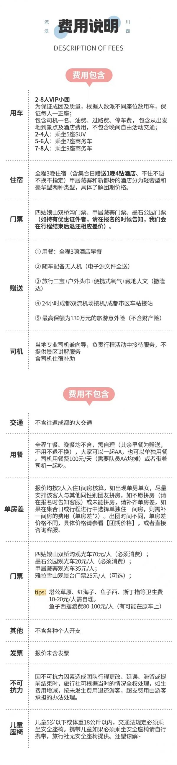 (1)如果因為人力不可抗拒因素(如塌方、泥石流、路橋被毀、航班延誤、國家政策、戰爭、瘟疫、交通管制、堵車等)導致不能履行合同和旅程變化,“玩聚川西小環線”不承擔相關賠償;