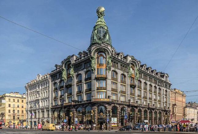 外觀海軍部大樓:整個(gè)大樓融合古典主義建筑藝術(shù)和俄國(guó)建筑藝術(shù),并用眾多塑像浮雕壁畫裝飾,整座大廈顯得熠熠生輝。