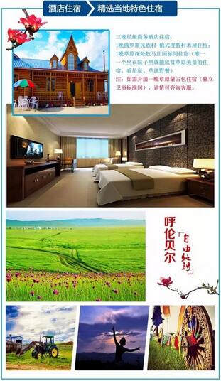 二、全程住宿費(fèi),全程一共五晚酒店,包含海拉爾住宿,海拉爾為呼倫貝爾首府,亦是草原行的第一站。(第一晚海拉爾賓館雙標(biāo)、第二晚莫爾道嘎賓館雙標(biāo)、第三晚室韋俄式客棧雙標(biāo)、第四晚黑山頭牧馬莊園客棧雙人標(biāo)間、第五晚滿洲里賓館雙標(biāo))