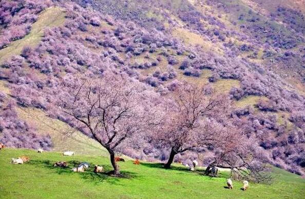 早餐后乘車前往參觀【吐爾根杏花溝】。(賞花時間根據當地的氣候和天氣條件決定,敬請諒解)每年四月份起,伊犁河谷開始進入一個美麗浪漫的季節,山上、草原上的果花、草花次第盛開,美不勝收!最先盛開的就是野杏花。那個季節野杏花綿延十幾公里,粉紅的、雪白的杏花把一個個山頭妝扮起來,牛羊似珍珠灑落在花林間、草坡上。最震撼是這種自然、原生態的壯美,一個花海的世界、一個迷人的仙境!抵達新源用晚餐,晚餐后入住酒店。