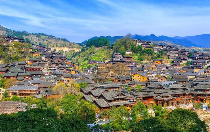 早餐后乘車出發前往【朗德上寨】游覽一個有百戶人家的苗族村寨。郎德上寨系苗語“能兌昂糾”的意譯,“能兌”即歐兌河下游之意,村以河名,“昂糾”即上寨,郎德上寨因屬郎德地片上方,故名。寨內苗民的服飾以長裙為特征,所以又稱為“長裙苗”。在這里除了可以欣賞到苗族獨有的木吊腳樓建筑外,還可以欣賞到寨民表演的攔路酒歌、盛裝苗舞、蘆笙舞、八抬蘆笙舞等等節目。郎德鎮具有著得天獨厚的民族旅游資源,鎮內有享譽海內外的“中國民間歌舞藝術之鄉”、“全國百座露天博物館”和“蘆笙之鄉”。朗德上寨古建筑群被列為我國第五批重點文物保護單位。