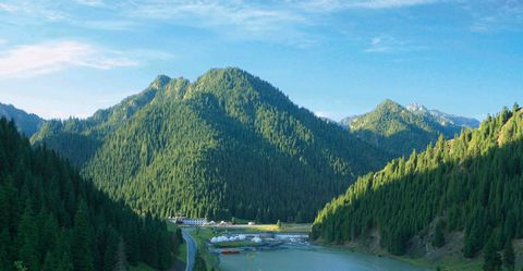 天山天池----古稱"瑤池",是以高山湖泊為中心的自然風景區;