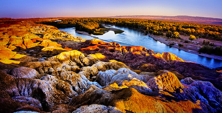 早餐后乘車沿217國道前往哈巴河縣,途經克拉瑪依【百里黑油田】;外觀【烏爾禾魔鬼城】魔鬼城一帶經過千百萬年的流水侵蝕和風沙沖擊,像是一座座古代的城垣、堡壘和宮殿,還有許多生動逼真的動植物造型景觀。夏秋季節這里常常會刮起七八級大風,風沿著谷地吹過,發出凄厲的聲響,有如鬼哭狼嚎,“魔鬼城”的名字就是這樣得來的;由于這里景致獨特,許多電影都把魔鬼城當作了外景地,比如奧斯卡大獎影片《臥虎藏龍》等,并被《中國國家地理》評選為“中國最美的三大雅丹”。后游覽“被譽為天下第一攤【五彩灘】(贈送景點,不去不退費)。五彩灘-位于新疆維吾爾自治區布爾津縣西北約24公里的窩依莫克鄉境內,在一片戈壁荒漠中有一個五彩繽紛的世界,它以怪異、神秘、壯美而著稱,這就是攝影的天堂。晚入住哈巴河的酒店。
