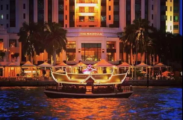 半島酒店還有私人碼頭和私人游船。等到晚上,游船上的彩燈亮起,便懂了宋冬野的那句“買胭脂河里船行漁歌,黃金世界中萬物法則”。