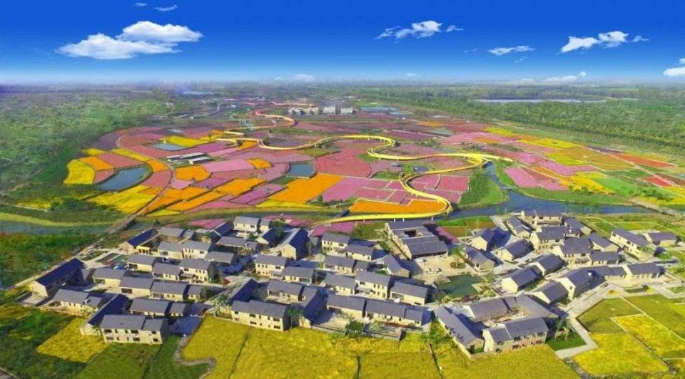 【衲田花海】景區內的“衲田花海”,總面積2220畝,由612塊花田 “縫補”拼接而成,融合了北方旱梯田的雄渾和南方水梯田的俊秀,與僧人袈裟異曲同工,又兼具納祥聚福之意,樸質卻熠熠生輝。這里栽植著50多種花卉,自南向北形成黃、紅、紫三大色區,呈現出海納百川之態、兼容并蓄之美。站在全長2.3公里的彩虹橋俯瞰花海,聽花開花落,嗅濃郁芬芳,感受濃濃的原鄉情懷。