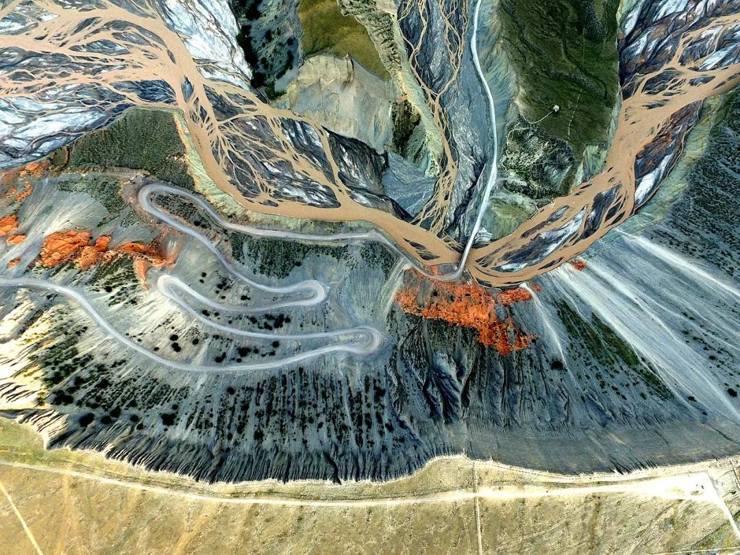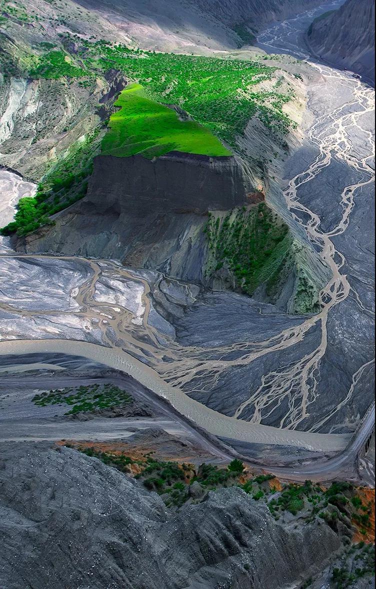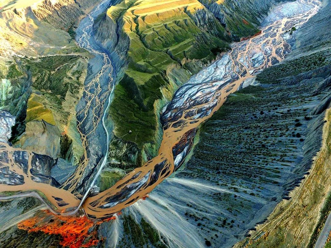 鮮為人知的安集海峽谷,其實有著令人目眩、剛柔并濟的壯美景觀:峽谷兩側是從上到下依次排開的河流階地,宛如波濤洶涌的海浪一樣撲面而來,充分顯示了峽谷陽剛的一面。而河谷里蜿蜒流淌的辮狀河流,千轉百回,在纏綿低語中將峽谷柔情的一面展露無遺。這條峽谷還以豐富的色彩而令人感到嘆為觀止。