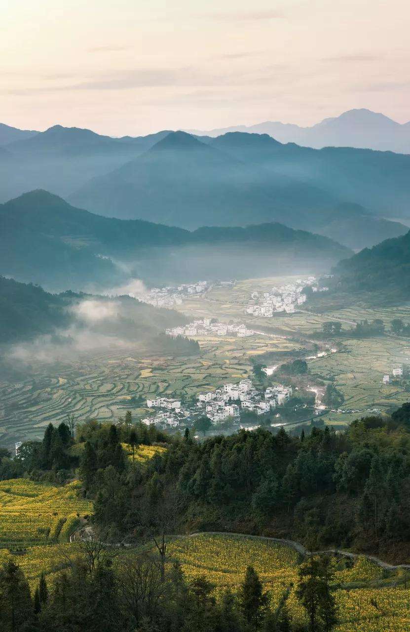 都說徽州“八分半山一分田,半分水路和莊園”這一點都不假,來到婺源,白墻青瓦間點點的鵝黃和翠綠,像極了古人畫中的景象。